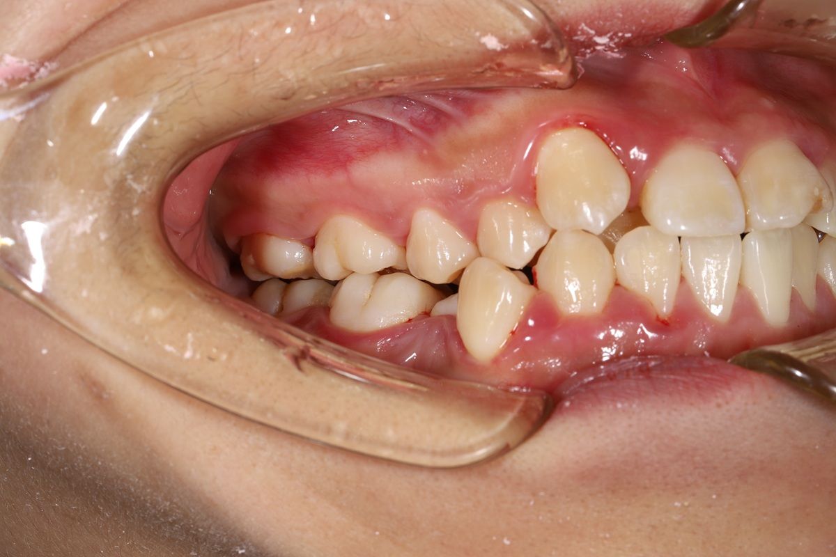 - Khớp cắn đối, ảnh hưởng đến chức năng ăn nhai và độ cân đối gương mặt.