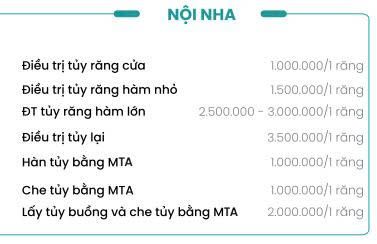 - Chính sách chăm sóc, theo dõi sau điều trị: Hướng dẫn chăm sóc răng sau chữa tủy, tái khám kiểm tra định kỳ để đảm bảo hiệu quả lâu dài