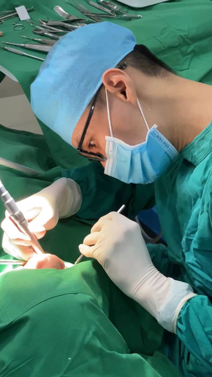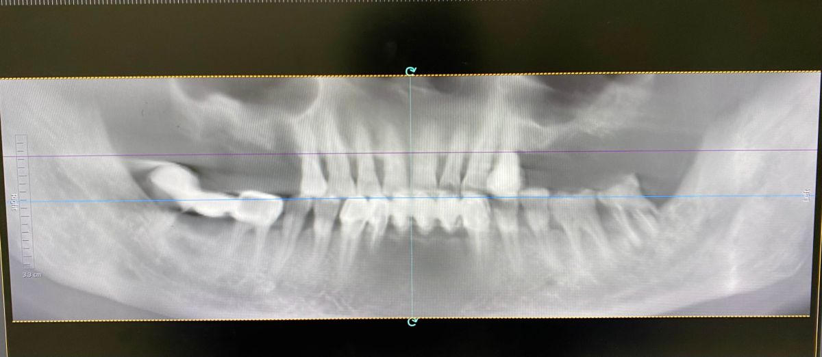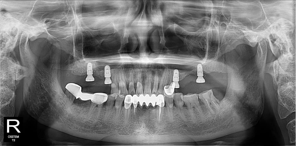 - Hàm trái: Implant tại R25 – R27, phục hình 3 răng, nâng xoang hở hàm trái