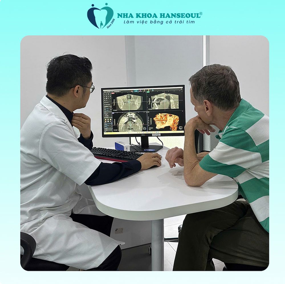 Để khôi phục 3 vị trí răng mất (24, 46, 36), bác sĩ Hà đã tư vấn giải pháp cấy ghép Implant - phương pháp phục hồi răng tiên tiến nhất hiện nay. Sau khi được giới thiệu về các dòng trụ Implant khác nhau với ưu nhược điểm riêng, ông Nigel đã quyết định lựa chọn Implant Straumann - thương hiệu số 1 thế giới đến từ Thụy Sỹ.