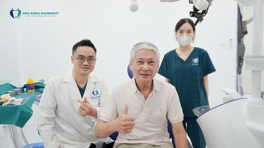 “Tôi có 2 răng hàm đã mất lâu rồi, nhưng sợ đau nên mãi chưa trồng lại. Gần đây, các con tôi đưa tới Hanseoul nghe nói là có công nghệ mới, đúng là không đau nhiều. Sau 3 ngày là ăn nhai bình thường.” — Ông Nguyễn Hữu T., 60 tuổi, Vinsmart – An Khánh, Hà Nội.