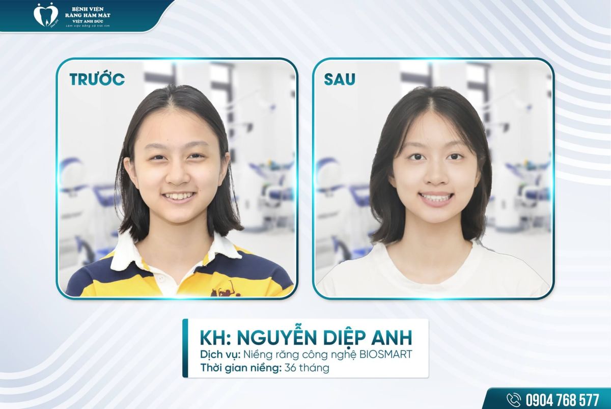 Bạn Diệp Anh – 23 tuổi: “Trước khi niềng, răng mình khấp khểnh và khớp cắn sai, cười không dám hở răng. Sau hơn 18 tháng niềng tại Hanseoul Trần Não, giờ mình tự tin cười tươi mỗi ngày. Bác sĩ cực kỳ tận tâm, lịch tái khám đều đặn và luôn theo sát tiến trình.”