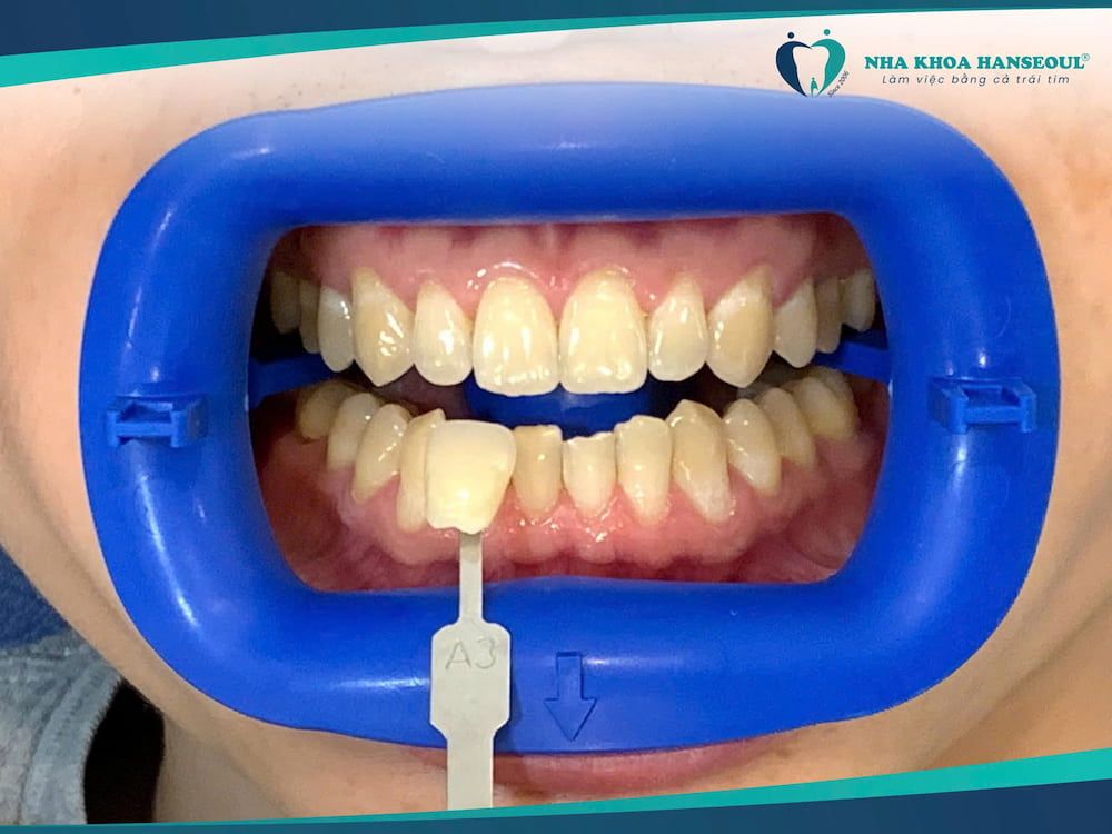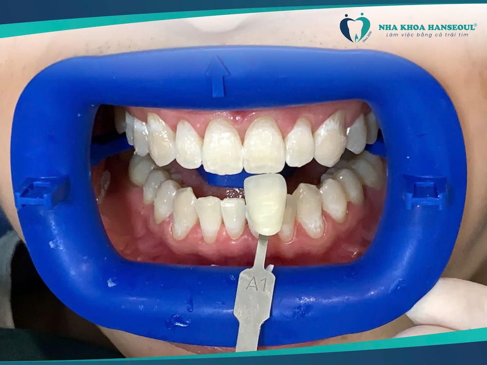 Sau khi đánh giá tổng thể tình trạng răng miệng và nhu cầu thẩm mỹ của khách hàng, bác sĩ tại Nha khoa Hanseoul chỉ định tẩy trắng răng bằng công nghệ Zoom Whitening. Đây là phương pháp phù hợp với các trường hợp răng nhiễm màu mức độ nhẹ đến trung bình, ưu tiên giải pháp ít xâm lấn và bảo tồn mô răng thật.